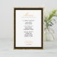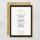 White and gold glitter wedding reception menu card with black trim. Elegant typography for an expensive look at an affordable price. Customize the meal list and personal details. Great for a girly or whimsical / majestic wedding theme.