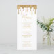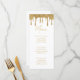 White and gold glitter drip wedding reception menu. Personalize it with your meal list.