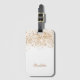 A stylish white background. Decorted with faux gold glitter dust. Personalize and add a name. The first name is written with a modern hand lettered style script.
