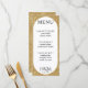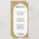 White and gold glitter wedding reception menu card with white oval. Elegant typography for an expensive look at an affordable price. Customize the meal list and personal details. Great for a modern minimalist wedding theme with a touch of style.