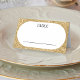 White and gold glitter wedding reception table place card with white oval. Elegant typography for an expensive look at an affordable price. Customize the personal details. Great for a modern minimalist wedding theme with a touch of style.