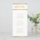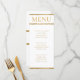 White and gold glitter stripe wedding reception menu. Personalize the meal list and names.
