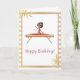 Beautiful birthday card with a black girl on a beam. This gymnastics birthday card has some gold elements but not that the gold parts in the card are printed and not actual foil will be displayed in the card. Personalize the text if desired, click in customize further to change the font, its color or size. Illustrated and designed by Patricia Alvarez.