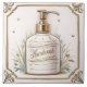 gold beige and white,hand wash bath room decor,clean hand wash room,washing cleaning product bottle,bathroom tile design ideas,soap pump ceramic tile,funny hygiene humor,restroom toilet bathroom,wash your hands palms,cream skincare tile art