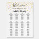 A classic white background. Decorated with golden hearts. Personalize and add the name of the bride and groom, add your guests names. Black text.