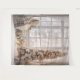 Step into a serene winter dream with this Elegant Christmas Scene, where soft neutrals and golden accents create a timeless holiday glow. A vintage-style armchair draped in a fluffy white throw invites cozy moments, while snow-covered trees glisten beyond sheer-curtained windows, setting a peaceful, storybook tone.