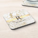 White & Gold Marble, Black Name & Monogram Beverage Coaster