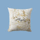 White & Gold Marble, Black Script Name or Monogram Throw Pillow