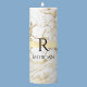 White & Gold Marble Gold Band, Black Name Monogram Pillar Candle
