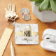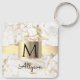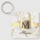 White & Gold Marble Gold Box, Black Name Monogram Keychain
