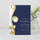 White Gold Navy Blue Chic Elegant Swirl Wedding Invitation