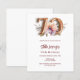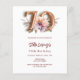 A modern, stylish and glamorous invitation for a 70th birthday. White background, decorated with a peach and purple watercolored flower. The name is written with a modern hand lettered style script. Personalize and add your party details. Number 70 is written with a balloon style font, script.