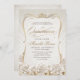 Plain white envelopes are included with paper invitations and will come to fit the invitation size you select. If you don’t need the envelopes, you may choose to not receive them by selecting the dropdown below "Envelopes" and choosing "None." If you’d like to have a design on your envelopes, you can browse all of these available envelopes to find the design that complements your White Gold Quinceanera Invitation.