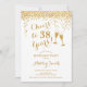 Elegant retirement party invitation for men or women. Invite card in white and faux glitter gold. Features classy typography script font, champagne glasses and confetti. Cheers to retirement! Personalize with your own details. Can be customized to show any year. Printed Zazzle invitations or instant download digital template. Perfect for a stylish retirement celebration.