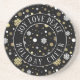 Chic beverage coaster with a pretty and modern JOY LOVE PEACE - HOLIDAY CHEER text in a pretty script font on a trendy winter holiday season white and gold looking snowflakes and polka dots pattern on a black background. This motif is available on seasonal products such as real foil greeting cards, ornaments, wrapping and tissue paper, tags, gift bags and favor boxes, stickers and ribbons.