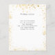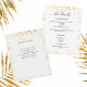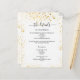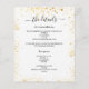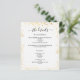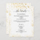 A modern, elegant wedding details/program/timeline. A white background decorated with faux gold glitter, sparkles. Personalize and add your names and wedding details. Black colored letters.