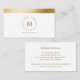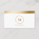 Elegant, white, gold stripe, circle, monogramm business card.There is no shine or texture. Edit your product in minutes by entering your data. You can change the font, color and position by "personalizing more".