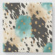 White Gold Turquoise Black Cowhide Name Stone Coaster