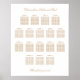 An elegant seating chart poster featuring stylish text in a golden shade of beige on traditional classic white. Please personalize the names of the couple and the names of the guests along with any of the other text that you may wish to personalize.