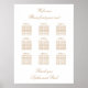 An elegant seating chart poster featuring stylish text in a golden shade of beige on traditional classic white. Please personalize the names of the couple and the names of the guests along with any of the other text that you may wish to personalize.