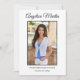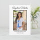 Modern, cute, and chic, white, two-sided graduation photo announcement flat card for Class of 2022 or any year. Personalize with your own photo on the front, your name, school name, and graduation year. Formatted vertically. The back of this card has 2 photos and any details you would like. Include high school accomplishments, plans for the future, graduation party information, or anything else you want to share. The background color is customizable, as well.