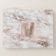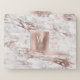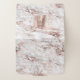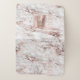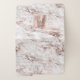 Elegant file folders featuring a background image of white and gray marble with rose gold veins. Personalize them with your monogram initial in decorative font and your name in white copperplate lettering on a brushed rose gold faux foil square.