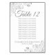 Make your wedding reception beautiful with these table number cards. They feature a simple yet elegant design with Gray text on a white background with a frilly silver faux foil floral border. These cards include seating assignments so your guests will have an easy time finding the right table.