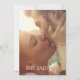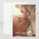 Lovely flat wedding SAVE THE DATE announcement card with soft green contemporary font against a crisp white background. This template features a couple photo with 'She said YES!' at the front. The back of the card includes all the 'Save the Date' information and a lovely couple monogram in light green.