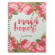 Vintage white and pale green lace maid-of-honor spiral notebook with pink roses and calligraphy. Personalized.