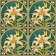 White Green Oriental Lily Art Nouveau Inspired Ceramic Tile