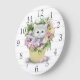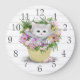 White Kitten in Basket Wall Clock