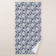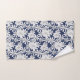 White Hand Drawn Flowers On Navy Blue Floral Print Bath Towel Set