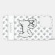 Destei's original cartoon illustration of a cute white coat color Bichon Havanais / Havanese breed dog. Under the dog there is a personalizable text area in gray color for a name. The background has a pattern of gray dog paw prints.