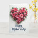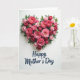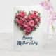 Designed with a heart-shaped floral arrangement set against a bright white background, this card centers on a lush cluster of roses and leafy greenery that feels like a gentle embrace ❤️. The flowers shift through shades of pink and red, from pale blush to deep crimson, and the layered petals look soft and freshly opened. Green leaves weave between the blooms, adding contrast and a natural, cozy touch that reads like quiet affection. The heart sits higher on the front, leaving generous open space below so the design can breathe and the eye can linger. Light falls softly across the petals, creating a calm glow with only a faint shadow underneath that makes the bouquet look slightly raised. Beneath the floral heart, a short message appears in dark blue, placed neatly in the lower area and centered for an easy read 🌼. The lettering has a flowing handwritten look, and the white space around it keeps the words clear and uncluttered. The final detail is the subtle shadow just under the lowest roses, tapering lightly into the white background.