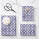 White Hearts on Navy Blue Linen Wrapping Paper Sheets