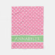 White Hearts on Pink With Green Personalized Fleece Blanket