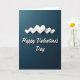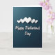 This greeting card features a tall layout with a deep teal background that feels calm and cozy. Across the upper part, five white hearts curve in an arch, each one slightly raised with soft shadows that make them look layered. The hearts grow a bit larger toward the middle, which gives the shape a gentle, hugging feeling. Below the hearts, the text “Happy Valentine’s Day” appears in smooth, flowing white lettering near the center-lower area of the card. The white hearts and lettering stand out clearly against the teal, and the shading adds a nice sense of depth without being busy. It feels meaningful because the simple heart shapes and quiet colors let you focus on caring, whether it’s for a partner or a close friend 🥰. This is the kind of card that says a lot without needing extra details, and it’s easy to picture someone smiling when they open it ❤️.