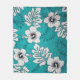 White Hibiscus Floral Pattern On Aqua Turquoise Fleece Blanket