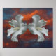 Lovely white hibiscus flowers with raindrops on a dramatic early morning sky floral art design by Susan.