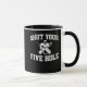 Hockey theme mug for the hockey goalie features a white silhouette hockey goalie with white text that reads Shut Your Five Hole.