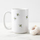 Elegant white ceramic mug with pretty little honeybees scattered randomly across the mug. Great gift for bee-lovers, nature-lovers, gardeners, or beekeepers.
