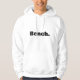 White hooded sweatshirt showing "Bench."