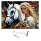 Introducing a captivating artwork featuring the serene beauty of a White Horse and it's beautiful blonde riding partner, now available for purchase! This exquisite composition celebrates the majestic allure of the white horse, capturing its grace and strength in a visually striking display.