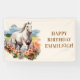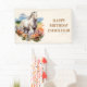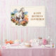 Celebrate a special birthday with this beautiful horse-themed banner featuring a majestic cream-colored horse galloping through a vibrant field of wildflowers, with scenic mountains in the background. Personalized with the birthday girl's name, this design is perfect for any horse lover or western-themed party. The soft cream background and warm floral tones add a whimsical, country charm to your celebration.