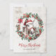 White horse Santa hat Christmas wreath rustic wood Holiday Card