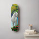 Painting of a white horse by Carolyn McFann printed on a skateboard deck for equestrians and equine fans.