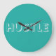 Funky and cool typography wall clock with a fresh and modern text design of the word hustle. Are you doing what you have to do to meet your goals at work or school? Let everyone know about your hustle with this trendy design. Customize this motivational quotation clock by adding your own text and choosing your own background color.