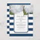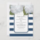White Hydrangea Bridal Luncheon Navy Blue Stripe Invitation