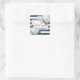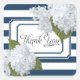 White Hydrangea Floral Nautical Navy Blue Striped Square Sticker