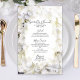Customize the elegant White Hydrangea Flowers Watercolor Wedding Menu with the details of the meal that you will serve at your garden party inspo theme bridal shower luncheon, engagement party, wedding brunch, rehearsal dinner or reception by adding the salad or first course, entree or second course and dessert or third course. Personalize it with the names of the bride and groom, venue location and marriage ceremony date. This classy custom flowery wedding menu features a close up digitally watercolor painted floral photograph of white hydrangea flower blossom petals adorning the corners with a white background.